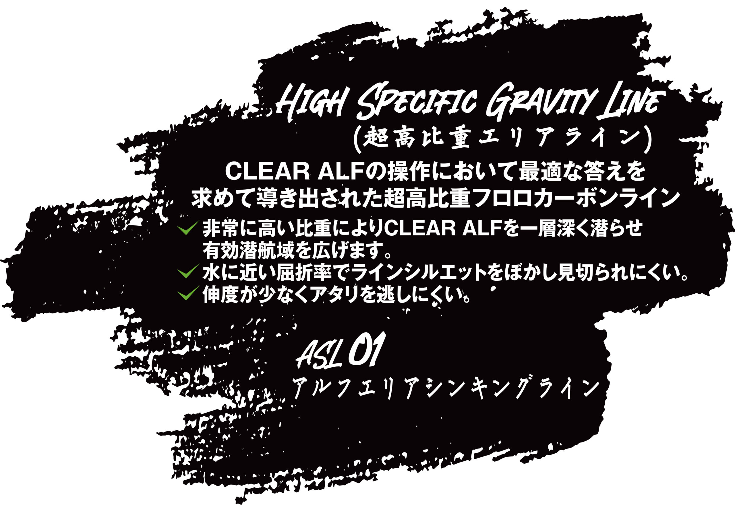 クリアアルフインジェクション発売に伴いALFREDから初となるクリアアルフ操作性重点設定のフロロカーボン超高比重のラインがクリアアルフ0.8g インジェクションタイプと同時発売されます。